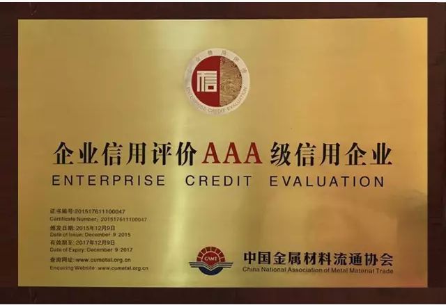 您現(xiàn)在的位置:豐碩偉業(yè)鋼鐵貿易有限公司> 企業(yè)榮譽